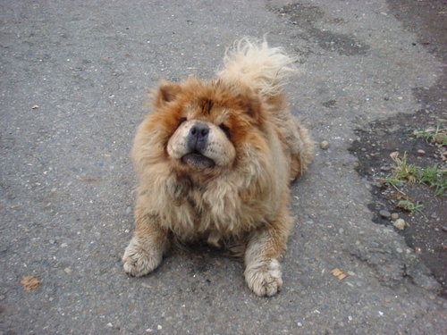 昨晚的一場雨.鬆獅犬更髒了.....身上還有一條很爛又細的牽繩.拜託牠是大型犬竟用如此細繩