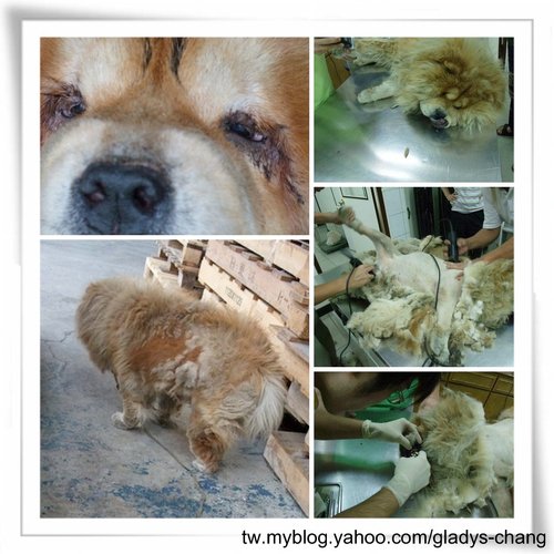 驅前查看.發現牠右後腳不敢著地.但沒外傷.毛打結.全身臭.不曉得是不是生病不舒服.還是腳痛.鬆獅犬根本懶得走動.今天下雨耶~唉