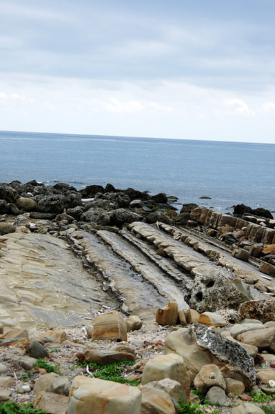 野柳地層由厚層砂岩及薄層頁岩交互沈積形成,稱為砂頁岩互層。從地質上解釋,基本上是一塊很大的外來岩塊,由於砂岩和頁岩的軟硬不同,在海水長期侵蝕作用下,外貎上形成規則起伏,岩層面的節理也出現非常清晰的幾何線條,配合海的律動和藍天的變化,形成特殊的自然景觀令人嘆為觀止