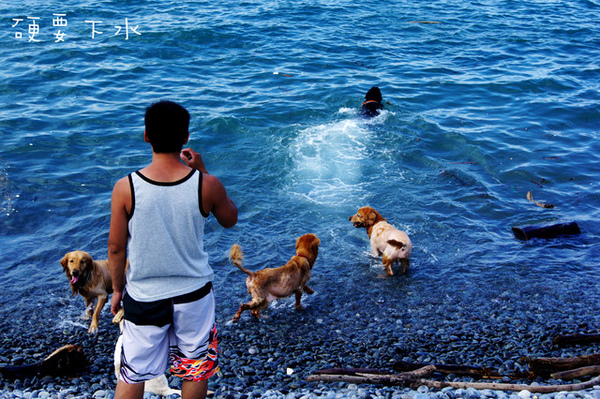 沒經過我同意給我自行下水~~小胖逼跟著開心的追過去(倒是沒膽下水又快跑回來)